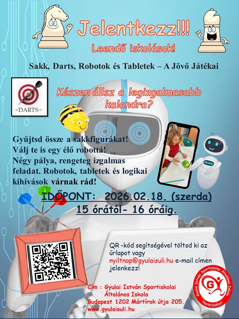 február 11, 2026BEISKOLÁZÁS, HírekAnna Kedves leendő iskolások! Szeretettel várunk Benneteket és szüleiteket egy izgalmas iskolaelőkészítő foglalkozásra 2026. február 18-án 15 órától 16 óráig. Kipróbálhatjátok a ” JÖVŐ JÁTÉKAIT” ! A plakáton minden információ olvasható.